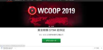 ブラウザで上記の画像のポーカースターズ公式サイトを開き、真ん中のダウンロードボタンをクリックしてください。