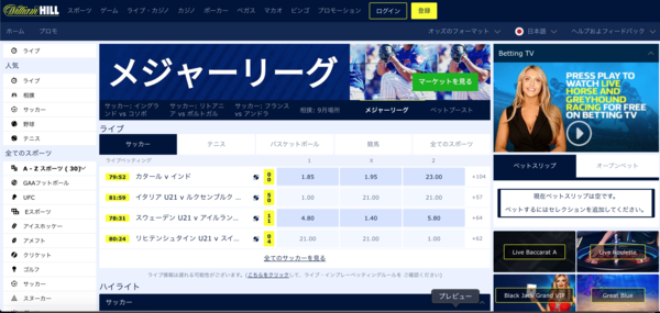 ウィリアムヒルカジノはさまざまなスポーツ、ワールドカップ、オリンピックなどのスポーツを扱っており、賭け方もオッズも多種多様。
