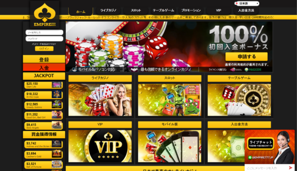 エンパイアカジノはオンラインカジノのなかでも、ライブカジノに特化したカジノサイトです。