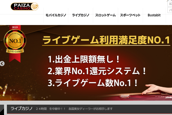 パイザカジノは「豊富なライブカジノ」や「出金スピードの速さ」をウリにしているカジノサイト。