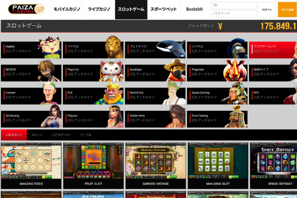 1000種類を超える豊富なスロットが揃う、パイザカジノ。