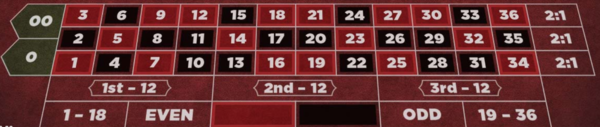 ベットしない数字が決まったら、それらの数字が含まれないカラムベットに、それぞれ12単位賭けます。