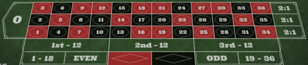ヨーロピアンルーレットは、「1」~「36」と「0」が1つ(シングルゼロ)の計37個の数字があるルーレット。