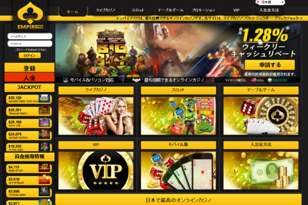 エンパイアカジノは、日本人ユーザーが多く、オンラインカジノで初めて遊ぶ人に最適です。
