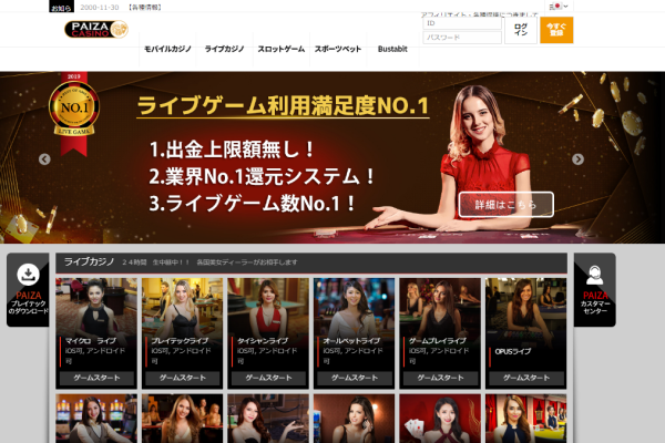 パイザカジノは、ライブカジノに力を入れているカジノサイト。